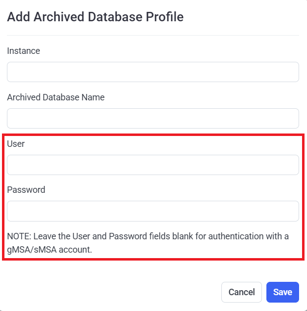 d) Also, when configuring the archive parameters, enter any values in the User and Password fields when: