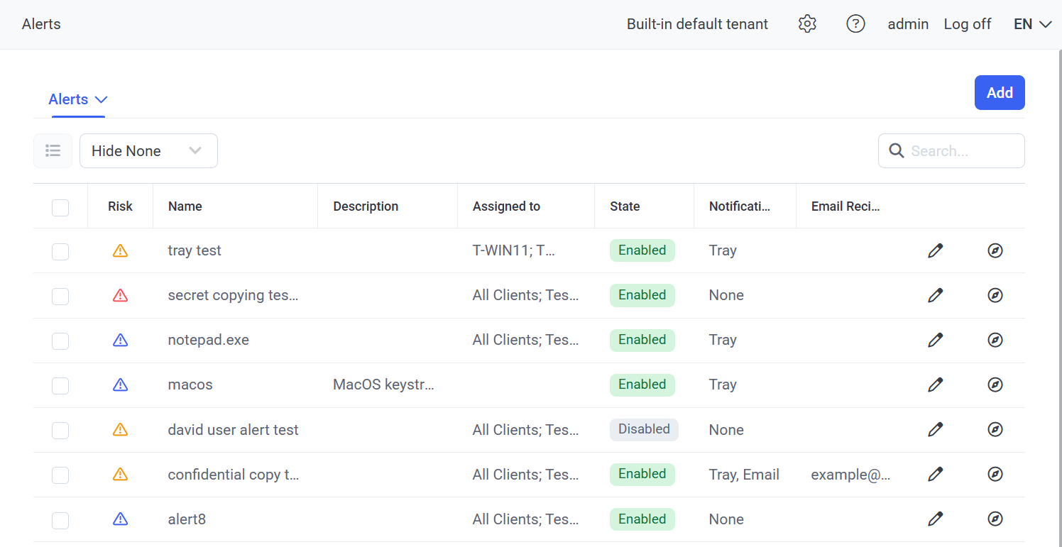To find the required alert, the Search box, and the filtering options drop-down list (click on the Hide None .png?inst-v=581ec777-c4a9-423e-a67a-d132395ea232)