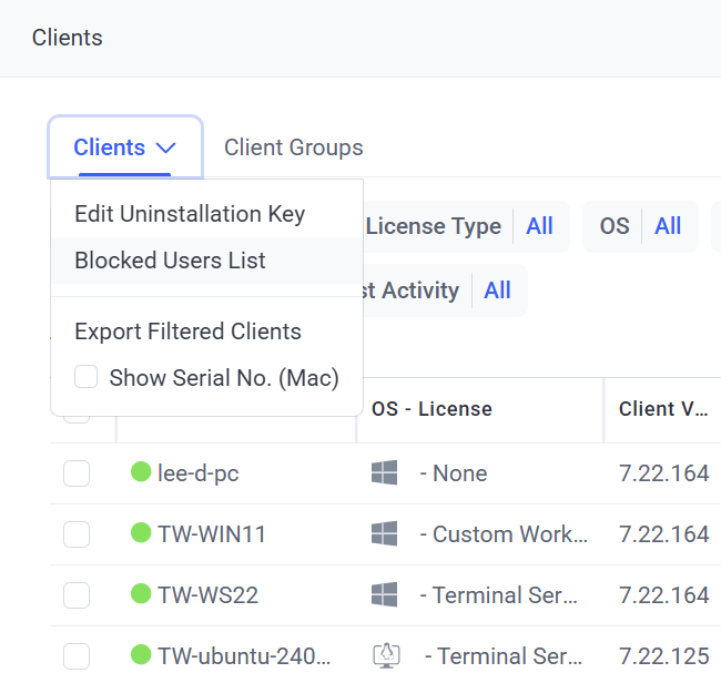 To view the Blocked Users list, click the Clients navigation link (on the left), and then click the Clients .png?inst-v=3c0c69fd-2faa-4e65-886c-21779e727fea)