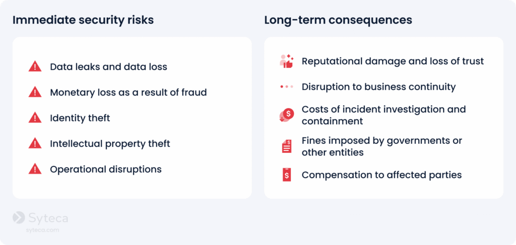 Besides financial losses, unauthorized use of information can damage an organization in a number of other ways. Unauthorized users can compromise your financial data, trade secrets, personal information, and other sensitive data, leading to identity theft, reputational damage, and legal consequences. Unauthorized access can also result in system downtime, loss of productivity, and disruption of your organization’s critical services.