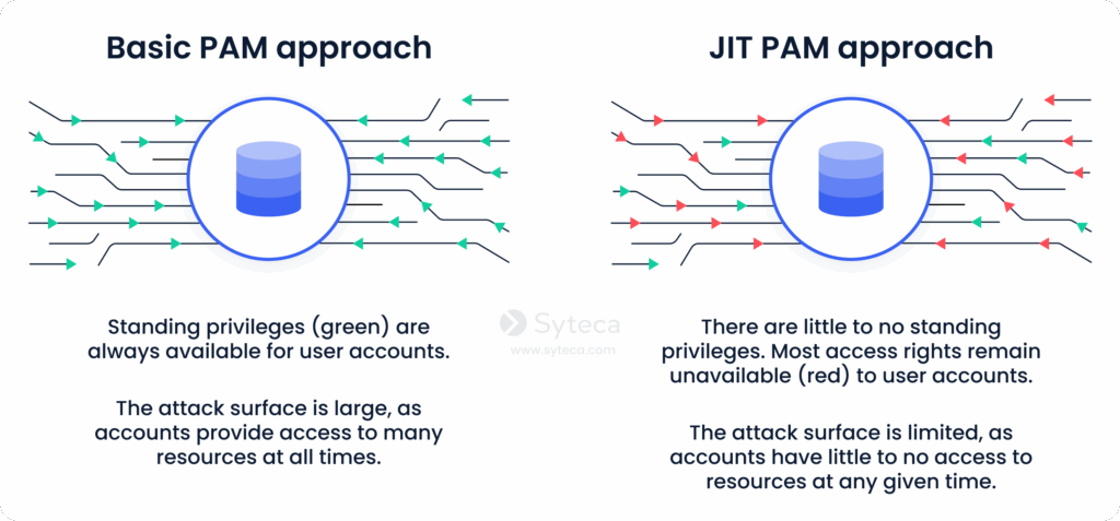 The idea behind JIT PAM is to grant access permissions only when users need to perform a certain task and for no longer than the time required to fulfill that task. This minimizes the risk of privileged users taking advantage of sensitive data or privileged accounts being abused by attackers.
