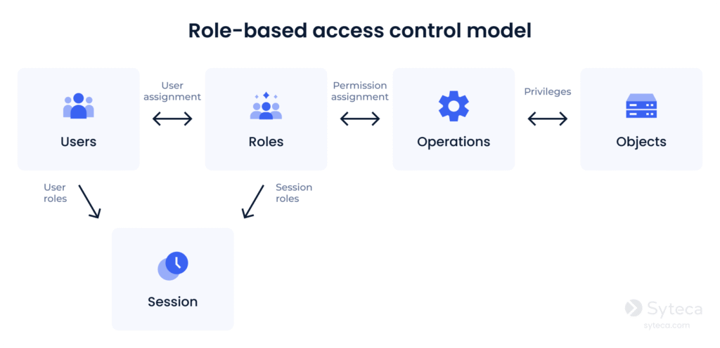 - Role-based access control (RBAC) assigns permissions based on predefined roles. It’s simple, efficient, and ideal for small to mid-sized organizations with stable role hierarchies.