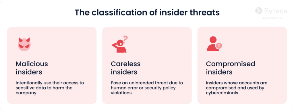 - Insider-driven security incidents occur across various industries and organizations of all sizes, demonstrating that no company is immune. Causes range from poor access control to users’ carelessness.