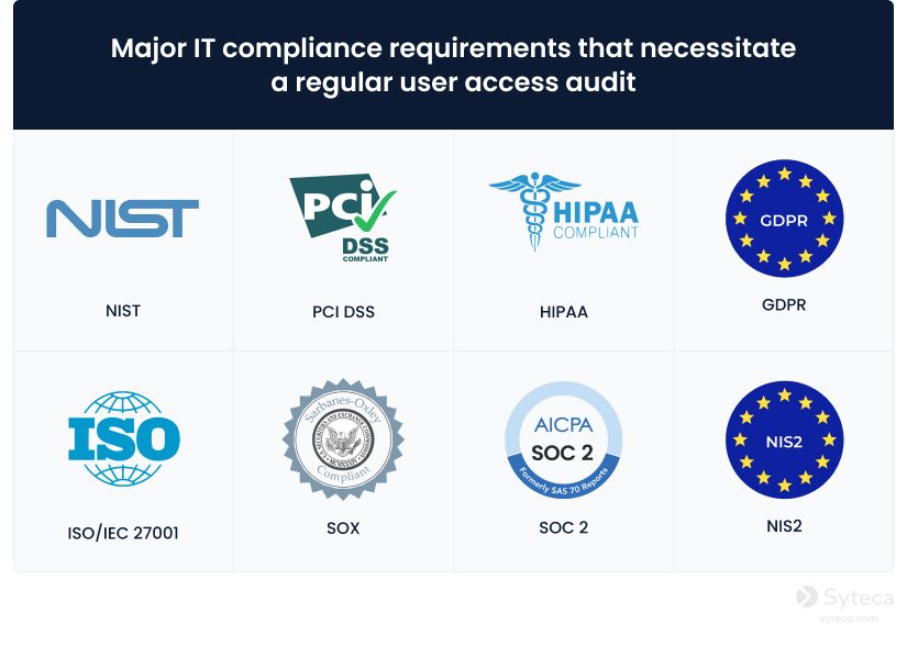 User access rights reviews are required by many international IT security standards and regulations, including: