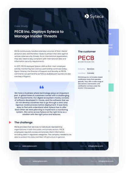 In 2017, PECB deployed Syteca as their main employee activity monitoring tool, and our partnership continues today.