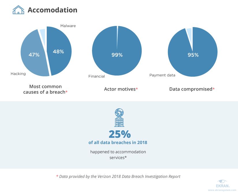 Zdaniem twórców raportu Verizon 2018 Data Breach Investigations Report niepokojące jest to, że hotele i inne podmioty wynajmujące noclegi nie dbają odpowiednio o bezpieczeństwo IT. Bardzo często nawet nie są świadomi tego, że miał u nich miejsce wyciek danych. To wszystko sprawia, że firmy z branży noclegowej są częstym celem cyberprzestępców. Niezabezpieczone dane kart płatniczych i potencjalny łatwy zysk finansowy kuszą i przyciągają hakerów.