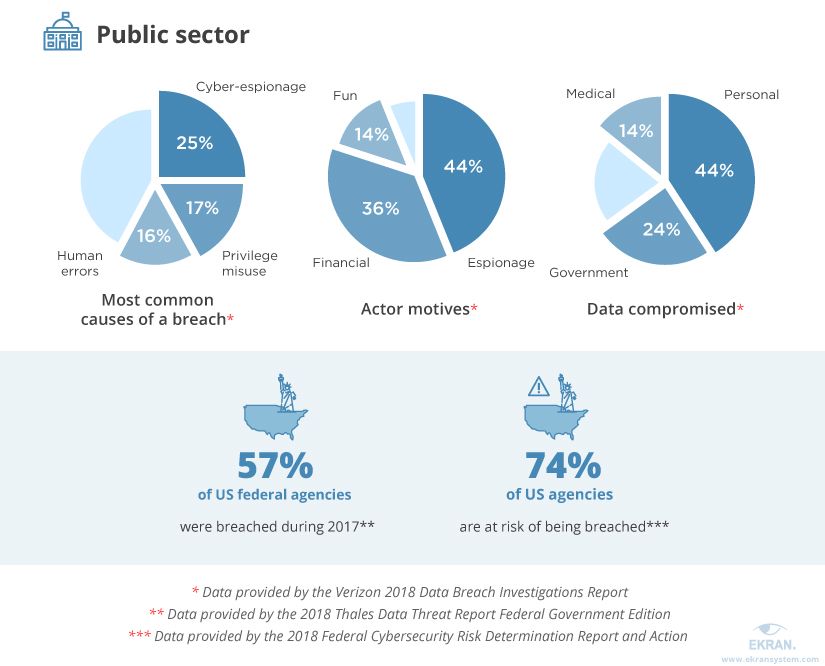 Rządowe bazy danych są narażone na cyberataki z różnych powodów. Instytucje publiczne są w posiadaniu bardzo ważnych informacji dotyczących na przykład bezpieczeństwa narodowego, co jest kuszące nie tylko dla zwykłych hakerów, ale także szpiegów. Dodatkowo często hakerzy atakują rządowe bazy danych dla zabawy, by móc się pochwalić, że udało im się złamać rządowe zabezpieczenia.